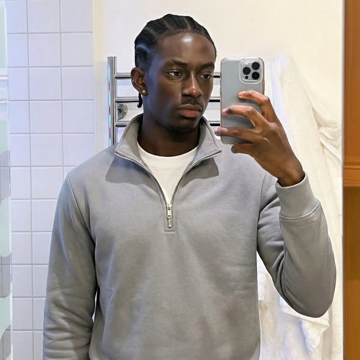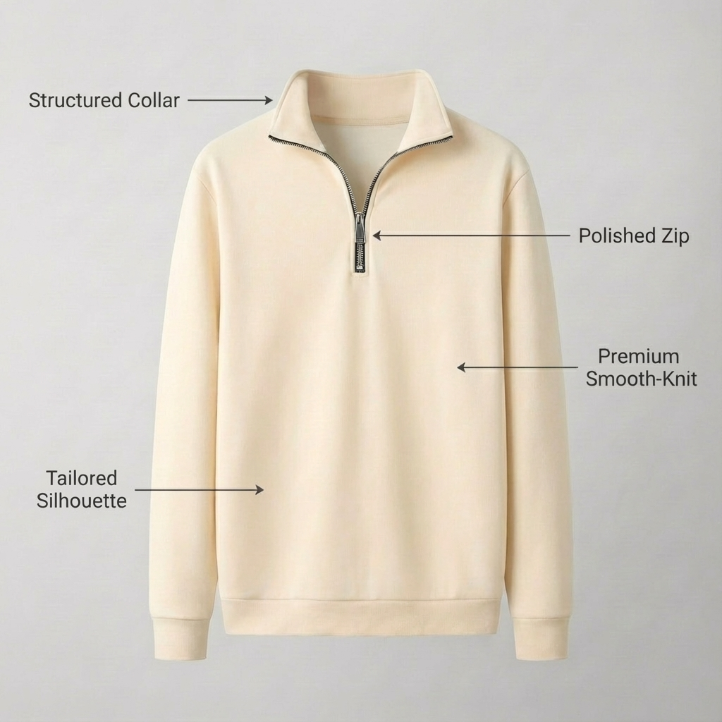 What makes this different from a cheap Amazon quarter-zip? Cut, weight, and construction. Ours is structured to elevate your silhouette not hang off you like a blanket. You get what you pay for. This one pays you back in compliments.