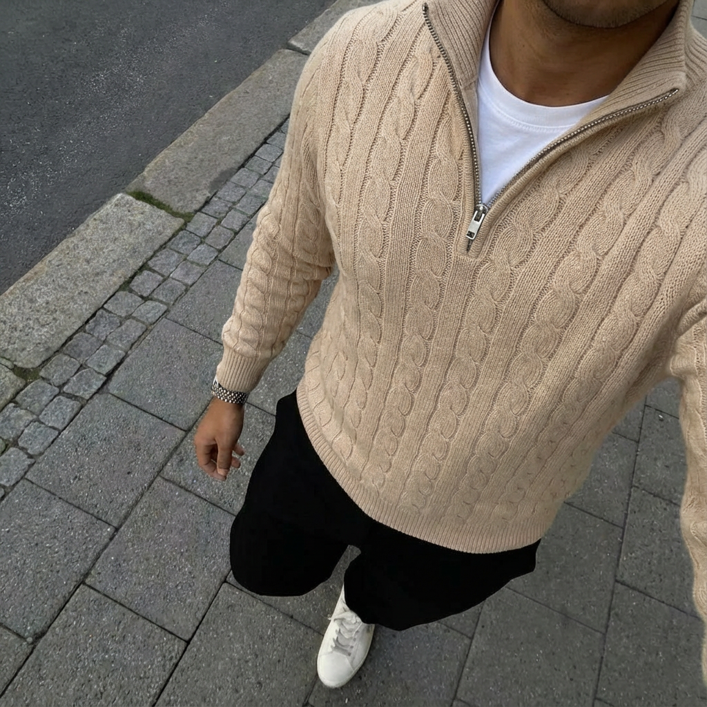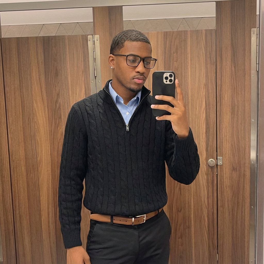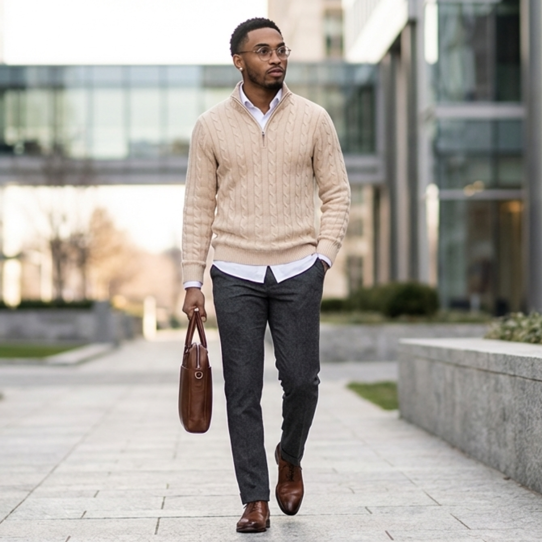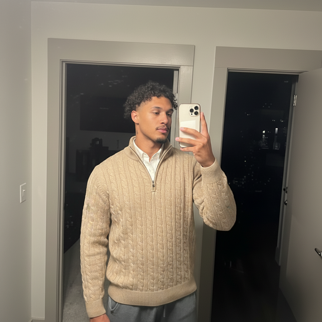 What makes this different from a cheap Amazon quarter-zip? Cut, weight, and construction. Ours is structured to elevate your silhouette not hang off you like a blanket. You get what you pay for. This one pays you back in compliments.